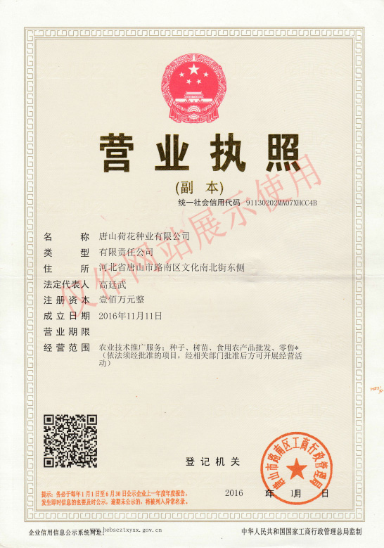唐山荷花種業(yè)有限公司始創(chuàng)于1984年,一直秉承“科技為先,誠信為本”的發(fā)展指導(dǎo)戰(zhàn)略,注冊商標“荷花”牌,經(jīng)過三十多年的發(fā)展,建立了從親本選育、試驗示范、生產(chǎn)檢驗、精選加工、推廣銷售及農(nóng)業(yè)技術(shù)咨詢一體化的經(jīng)營體系,目前擁有試驗基地、繁育基地、制種基地、及規(guī)模化種子冷貯藏庫,完善了由科研、檢驗、生產(chǎn)、銷售各個配套環(huán)節(jié)。荷花牌系列種子正是我們在堅持“誠信、品質(zhì)、開拓、創(chuàng)新”的企業(yè)精神下打造的種子品牌,如今,在全國已形成強勢品牌效應(yīng),是一個值得信賴與具有一定影響力的種子品牌,在全國廣大用戶中贏得了良好的口碑和信譽... ...